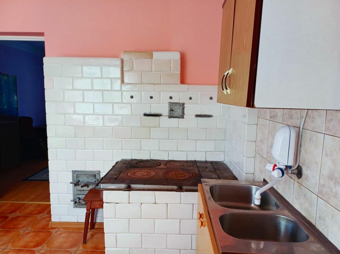 2 pokoje , kuchnia z trzonem kuchennym i piecem kaflowym wbudowanym w ścianę, łazienka z wanną, piecykiem gazowym, korytarz ( w korytarzu jest zainstalowana i czynna kuchenka gazowa), wiatrołap, podpiwniczenie pod połową budynku, strych.